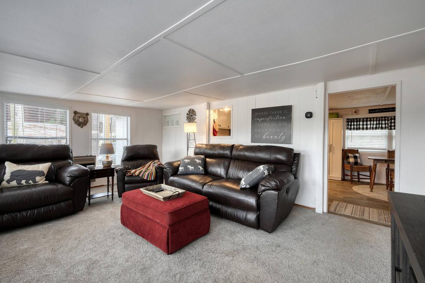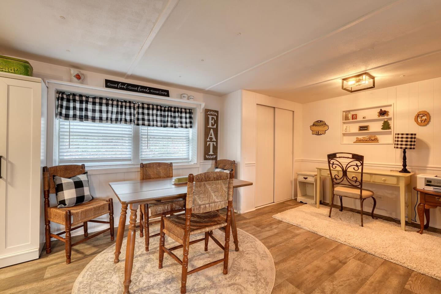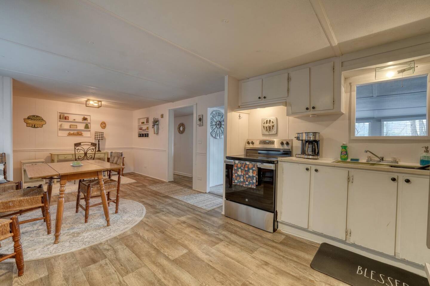 This is a two-bedroom, one full bathroom home. The master bedroom has a king bed, and the second bedroom has a double bed. The kitchen is equipped with a stove, microwave, toaster and coffeemaker. The full-size refrigerator has an ice maker. Plus, the kitchen is stocked with some extra conveniences, including a blender, pancake griddle and crockpot. There is a dedicated office space with a printer/scanner. The home is equipped with high-speed internet. The cottage has two smart TVs and a Bluetooth speaker so you can listen to your favorite tunes. If you're bringing little ones, we have a highchair and pack-n-play available. And this property is pet friendly. Two dogs of any size are welcome. The porch has a swing along with a table for outdoor dining. There is also a picnic table on the property as well as an outdoor firepit with seating. The quiet roads around the home are perfect for long, leisurely walks. And there are ponds and streams nearby. We look forward to hosting you!